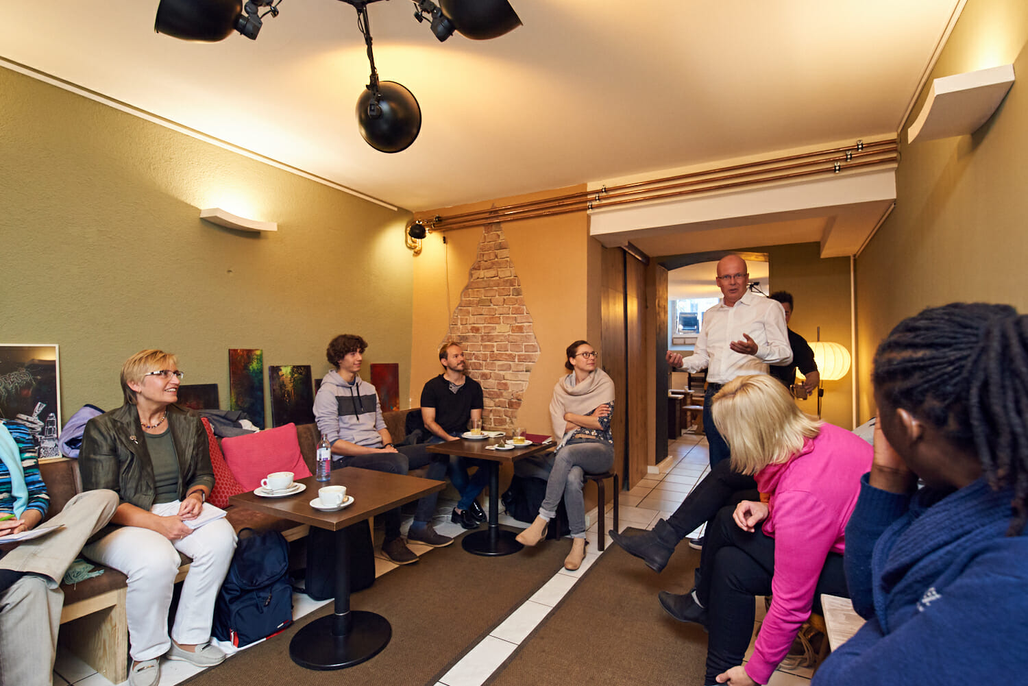 Impulsgeber war diesmal Thomas Henning, der Olis hoch gesteckte Erwartungen (Anm. d. Red: „Diesmal beweise ich euch das quasi Unmögliche – ich zeige euch, dass auch Franken Hochdeutsch sprechen können! … Indem ich Thomas Henning nach vorne bitte, der heute unseren Impuls halten wird!“) fast perfekt erfüllen konnte. (Er selbst gestand ein, dass das rollende „r“ auch nach über 30 Jahren in Berlin noch nicht ganz besiegt wurde und das sogar gewollt ist.)