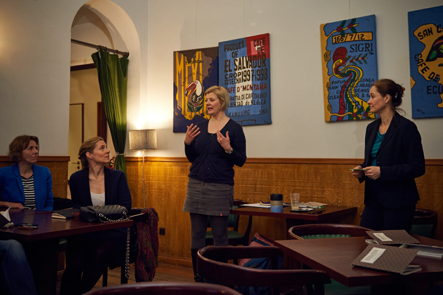 Am Montag trafen wieder ca. 20 Unternehmer/INNEN in die Berliner Kaffeerösterei in Charlottenburg ein. Diesmal wieder international. Drei kamen direkt mit ihrem Koffer vom Flughafen. Eine internationale Runde aus der Ukraine, Polen, Slowakei und natürlich Deutschland. Wir alle, meist Selbständige, lauschten dann gespannt dem Impulsvortrag mit der Meinung: